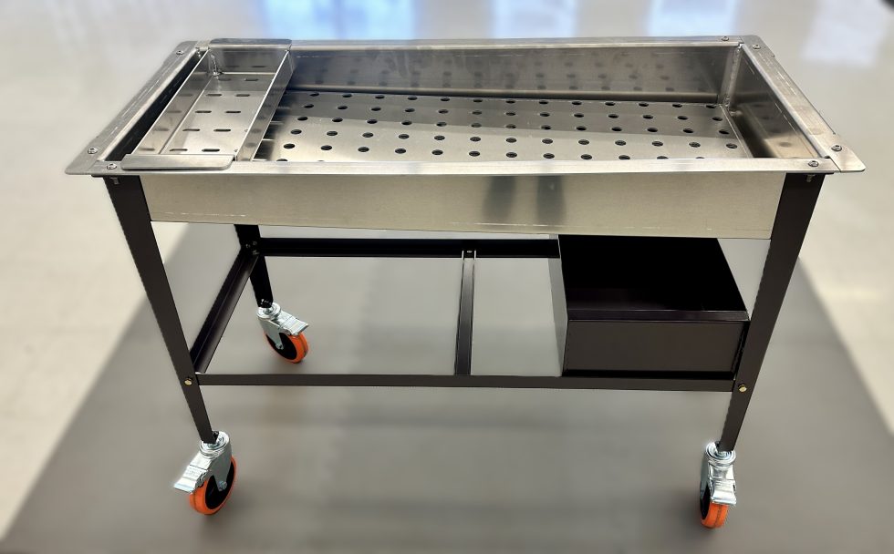 Our portable, movable tray for chain vises provides an exceptional solution for managing oil collection and tool organization during operations. Equipped with four sturdy wheels, this tray is easy to maneuver, allowing you to reposition it as needed in your workspace. Beneath the chain vise, it captures oil efficiently, keeping your area clean and tidy.